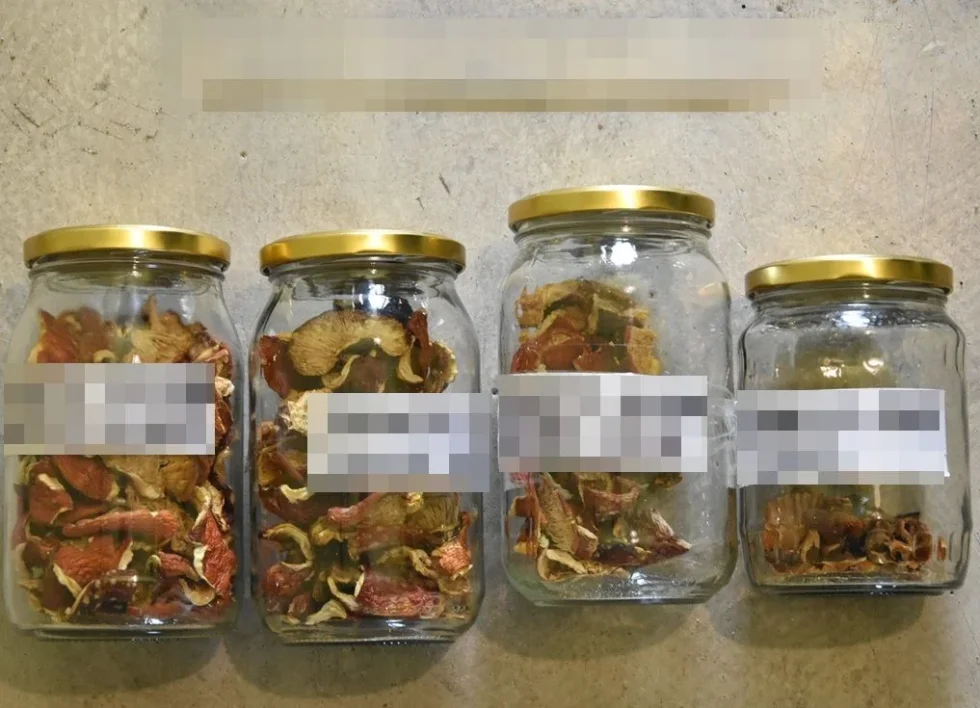 Mundurowi weszli pod wskazany adres i szybko potwierdzili swoje ustalenia. W trakcie przeszukania ujawnili i zabezpieczyli różnego rodzaju substancje - w tym biały i żółty proszek, kryształy, kapsułki oraz paski nasączone substancjami psychoaktywnymi. Wśród znalezisk były także słoiki z suszonymi grzybami zawierającymi niedozwolone substancje oraz susz marihuany.